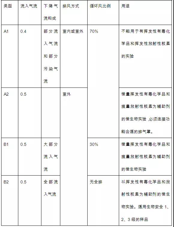 Ⅱ級安全柜按排放氣流占系統總流量的比例及內部設計結構分為A1、A2、B1、B2四種類型。